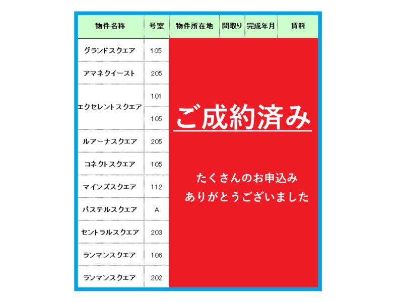 また、新たに空室になる部屋がありますので、引き続きよろしくお願いいたします。募集開始のお部屋は