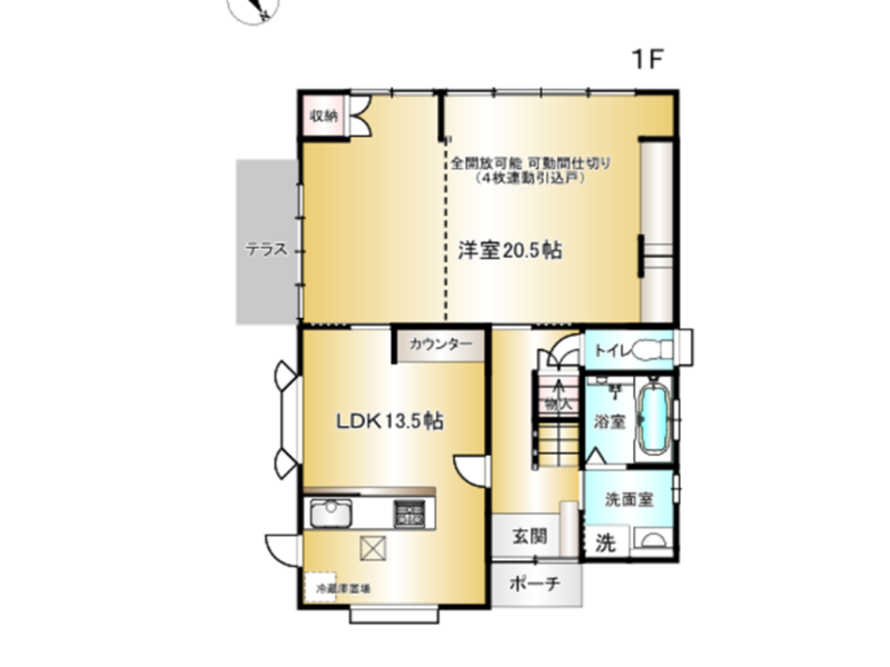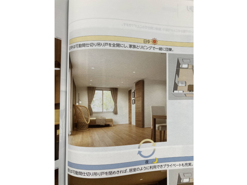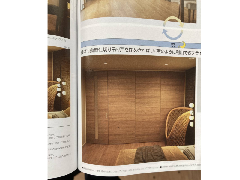 画像にある特注サイズの間仕切り建具を採用しており、開放すれば 広々4LDKとしても利用可能。